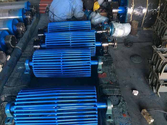 鼓型排渣滾筒系列兩端設(shè)置倒錐體結(jié)構(gòu),接觸面采用輪幅式,便于物料特別是大塊物料的排除,在輪幅工作面通過特殊工藝包覆聚氨酯彈性體耐磨材料,以利于提高耐磨性能及清掃效果,完全保護滾筒和膠帶,接觸面采用鼓型結(jié)構(gòu),可起到糾偏作用。