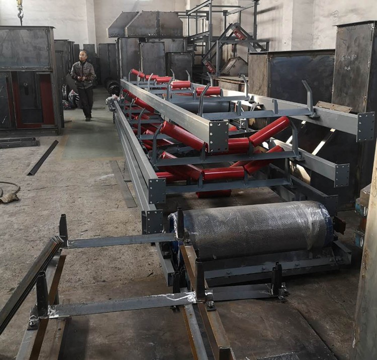 皮帶機是帶式輸送機的簡稱,有固定式和移動式,結構簡單,效率高。以撓性輸送帶作物料承載和牽引構件的連續輸送機械。一條無端的輸送帶環繞驅動滾筒和改向滾筒。兩滾筒之間的上下分支各以若干托輥支承。物料置于上分支上,利用驅動滾筒與帶之間的摩擦力曳引輸送帶和物料運行。適用于水平和傾斜方向輸送散粒物料和成件物品,也可用于進行一定工藝操作的流水作業線。結構簡單,工作平穩可靠,對物料適應性強,輸送能力較大,功耗小,應用廣泛。